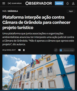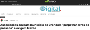 Sapo Digital – 25 de Maio de 2023 Duas associações de defesa do ambiente acusam em carta aberta a Câmara Municipal de Grândola (Setúbal) de continuar a “perpetrar os mesmos