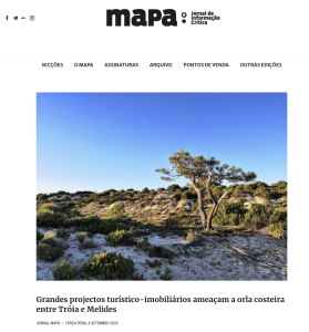 Canal RTVE Espanha – 8 de Maio de 2023 En Portugal, grupos ecologistas intentan frenar grandes proyectos hoteleros de lujo en una zona costera de alto valor ecológico, la península