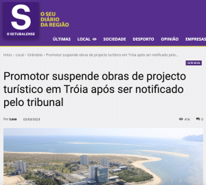 Reportagem RTP1: 22 de Fevereiro de 2023 Uma associação ambiental está a tentar travar em tribunal um complexo turístico de luxo projetado para as dunas de Troia.O projeto de 200