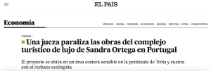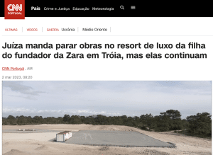 Notícias ao Minuto, 2 de Março de 2023 Em causa está o projeto ‘Na Praia’, um investimento de que faz parte Sandra Ortega, herdeira do grupo espanhol Inditex. Há uma ordem